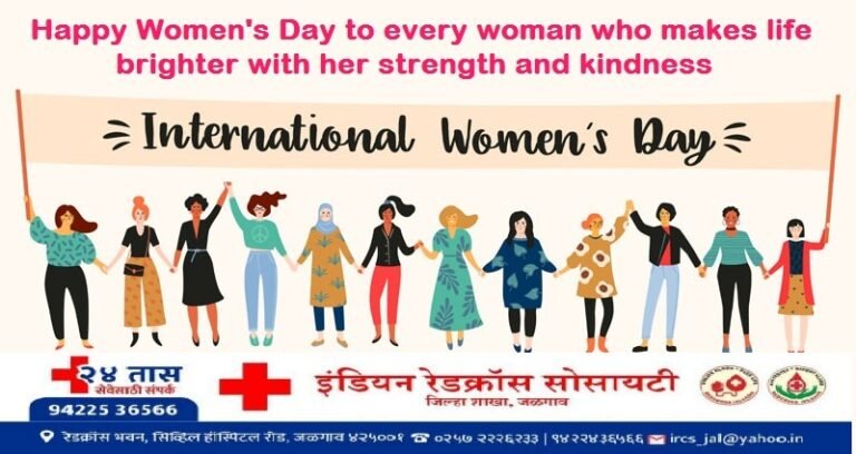 जागतिक महिला दिनानिमित्त इंडियन रेडक्रॉस सोसायटी जळगाव मार्फत स्माईल फाउंडेशन सामनेरच्या सहकार्याने जळगाव जिल्ह्यातील २७ गरजू व निराधार एच.आय.व्ही. ग्रस्त महिला भगिनींना किराणा साहित्य कीट भेट देण्याचा उपक्रम रेडक्रॉस भवन येथे दिनांक ९ मार्च रोजी आयोजित करण्यात आला. या कार्यक्रमासाठी रेडक्रॉस उपाध्यक्ष श्री. गनी मेमन, चेअरमन डॉ. मंगला ठोंबरे, सेक्रेटरी श्री. सुभाष सांखला, रक्तकेंद्र चेअरमन डॉ. प्रसन्नकुमार रेदासनी, रक्तकेंद्र व्हाईस चेअरमन श्री. राजकुमार वाणी, कार्यकारिणी सदस्य श्री. राजेश यावलकर, प्रशासकीय अधिकारी लक्ष्मण तिवारी, स्माईल फाउंडेशन सामनेरच्या श्रीमती मनीषा बागुल, श्री. प्रवीण पाटील व भगिनी उपस्थित होत्या.
