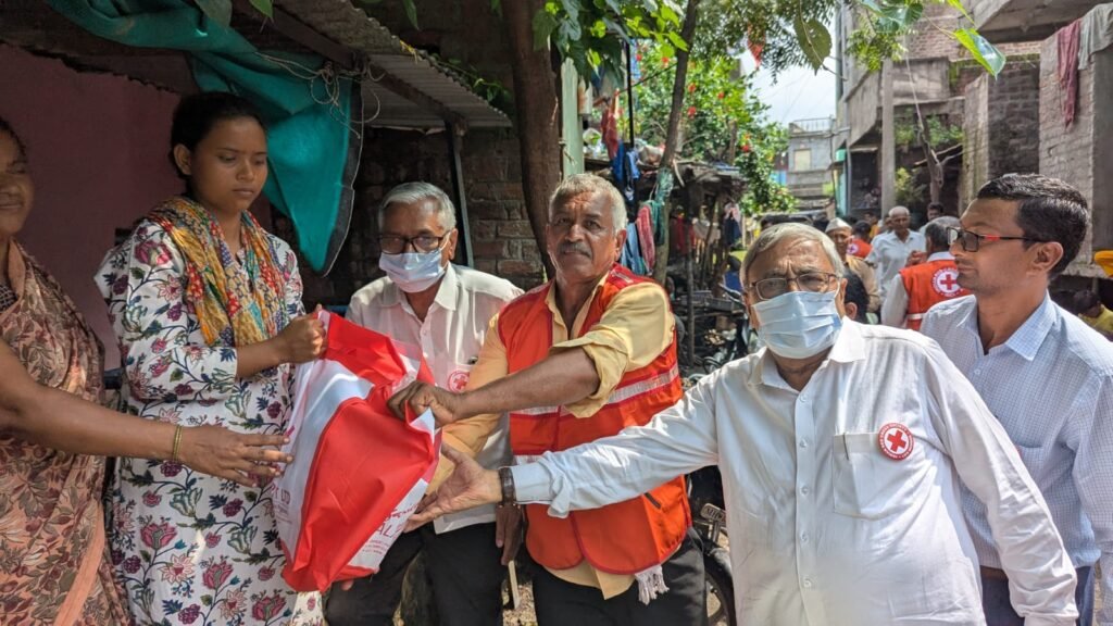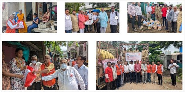 जळगाव जिल्ह्यातील पाचोरा तालुक्यातील पाचोरा शहर, शिंदाड, सातगाव डोंगरी, वेरुळी, चाळीसगाव तालुक्यातील पातोंडा, नगरदेवळा आणि सोयगाव तालुक्यातील बनोटी या गावांमध्ये अतीवृष्टी व ढगफुटीमुळे जवळजवळ ५०० घरांचे खूप मोठ्या प्रमाणात नुकसान झाले, अशी माहिती मिळाल्यावर लगेचच मा.जिल्हाधिकारी तथा रेडक्रॉस अध्यक्ष मा.श्री.आयुष प्रसाद यांच्या आवाहनानुसार रेडक्रॉसच्या आपत्ती व्यवस्थापन समितीमार्फत विस्थापित झालेल्या परिवारांना आवश्यक खाद्य पदार्थ व साहित्याची जमवाजमव करण्याकामी इंडियन रेडक्रॉस सोसायटीच्या चेअरमन डॉ. मंगलाताई ठोंबरे उपाध्यक्ष भालचंद्र पाटील, गनी मेमन, राजकुमार वाणी, सुभाष सांखला इत्यादीनी तयारी करण्यास सुरुवात केली, यात अत्यल्प वेळात सकाळपर्यंत दानशुर व्यक्ती व संस्थाच्या सहकार्याने तसेच रेडक्रॉसकडे उपलब्ध असलेल्या ताडपत्र्या, प्लास्टिक मॅटस, ब्लॅंकेट, गरम कपडे, साड्या, भांड्यांचे सेट, प्लास्टिक बादल्या, चिक्की, राजगिरा लाडू, खाकरा, लोणचे मसाले एक महिन्याचा रेशन इत्यादी साहित्य, तसेच दि जळगाव पिपल्स को-ऑपरेटीव्ह बँक आणि वेगा केमिकल्स यांच्या दातृत्वातून महिन्याभराचा किराणा सामान असलेले ५०० किट्स व जळगाव जिल्ह्यातील अनेक दानशूरांनी दिलेले दैनंदिन उपजीविकेसाठीचा आवश्यक किराणा सामान, डाळी, सोलापुरी चादरी, लहान मुलांचे कपडे, मोठ्यांसाठी टी-शर्ट, पारले-जी बिस्किट्सचे खोके, गरम मसाला, शुध्द पेयजलाचे पाणी बॉटल बॉक्स, गोडेतेल, गुळ, आंघोळीचे साबण, कपड्याचा साबण, टूथ ब्रश, टूथ पेस्ट, इत्यादी साहित्य पाठविण्यात आले.