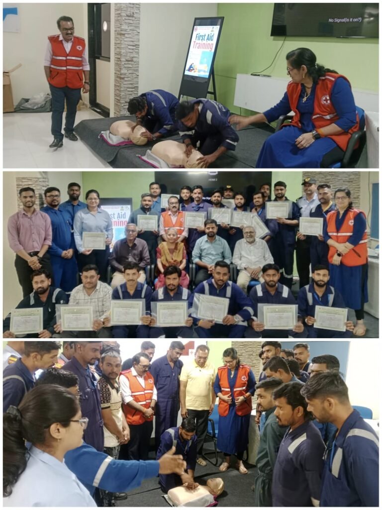 रेडक्रॉसमार्फत भारत पेट्रोलियम कॉर्पोरेशन लिमिटेड येथे एक दिवसीय प्रथमोपचार प्रशिक्षण शिबिर