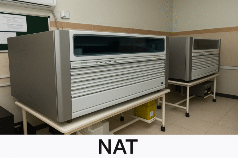 नॅट म्हणजे (न्यूक्लिक ऍसिड टेस्ट) सर्वाधिक रक्त पुरवठा करण्याकरिता जागतिक दर्जाचे प्रभावी तंत्रज्ञान प्रत्येक रक्तदात्याने दिलेल्या रक्तावर ते रक्त साठवून ठेवण्यापूर्वी एच. आय. व्ही., हिपॅटायटीस बी, हिपॅटायटीस सी, मलेरिया, सिफिलीस इ. घातक संसर्ग होऊ नयेत या करिता विविध प्रकारच्या चाचण्या सामन्यात: एलायझा नावाच्या तंत्राने केल्याने जातात.